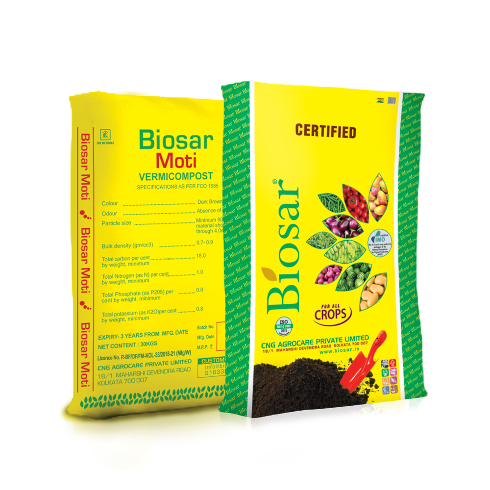 Biosar Moti, a vermi compost is a superior quality manure. It is rich in plant nutrients and provides all essential nutrients in exchangeable and available forms. The worm castings in the vermicompost have nutrients that are upto 97% utilizable by plants and the easting have a mucous coating which allows the nutrients to “time release”.